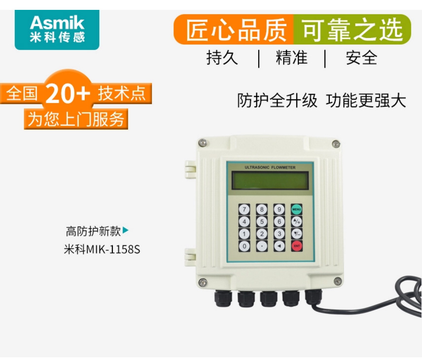 适用场合:较适合相对纯净液体流量的管外测量,尤其是在水流量测量、在工业循环水、空调制冷循环水、原水、高压水、自来水广泛应用