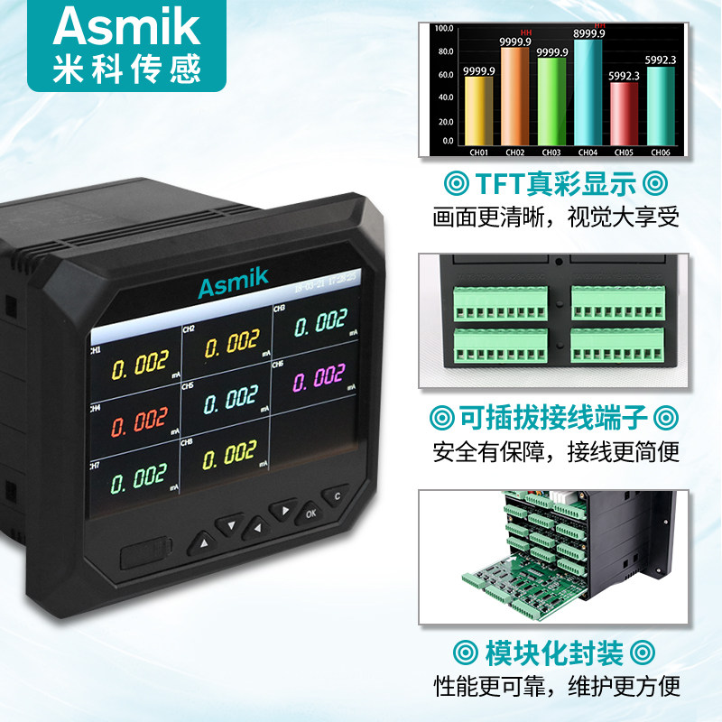 米科MIK-R6000F新款无纸记录仪1~36通道,集数据的测量、显示、处理、运算、报警、记录报表等多种功能于一身。可采集直流电压、电流、热电偶、热电阻等常规数值的的采集与记录。
